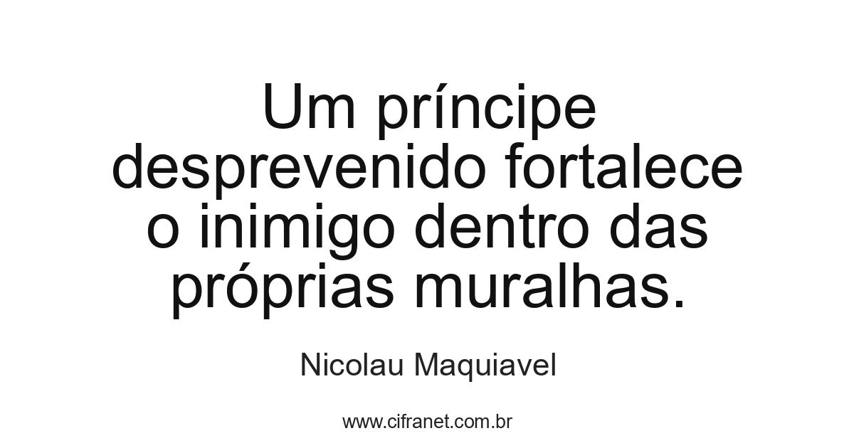 Um príncipe desprevenido fortalece o inimigo dentro das próprias muralhas.