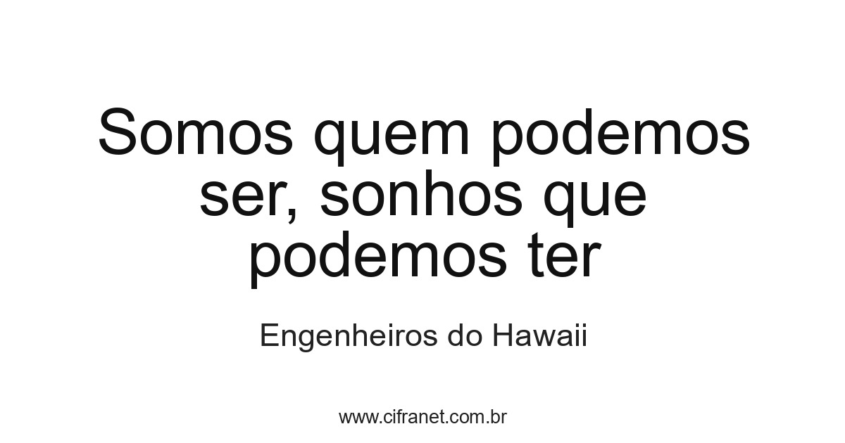 Somos quem podemos ser, sonhos que podemos ter