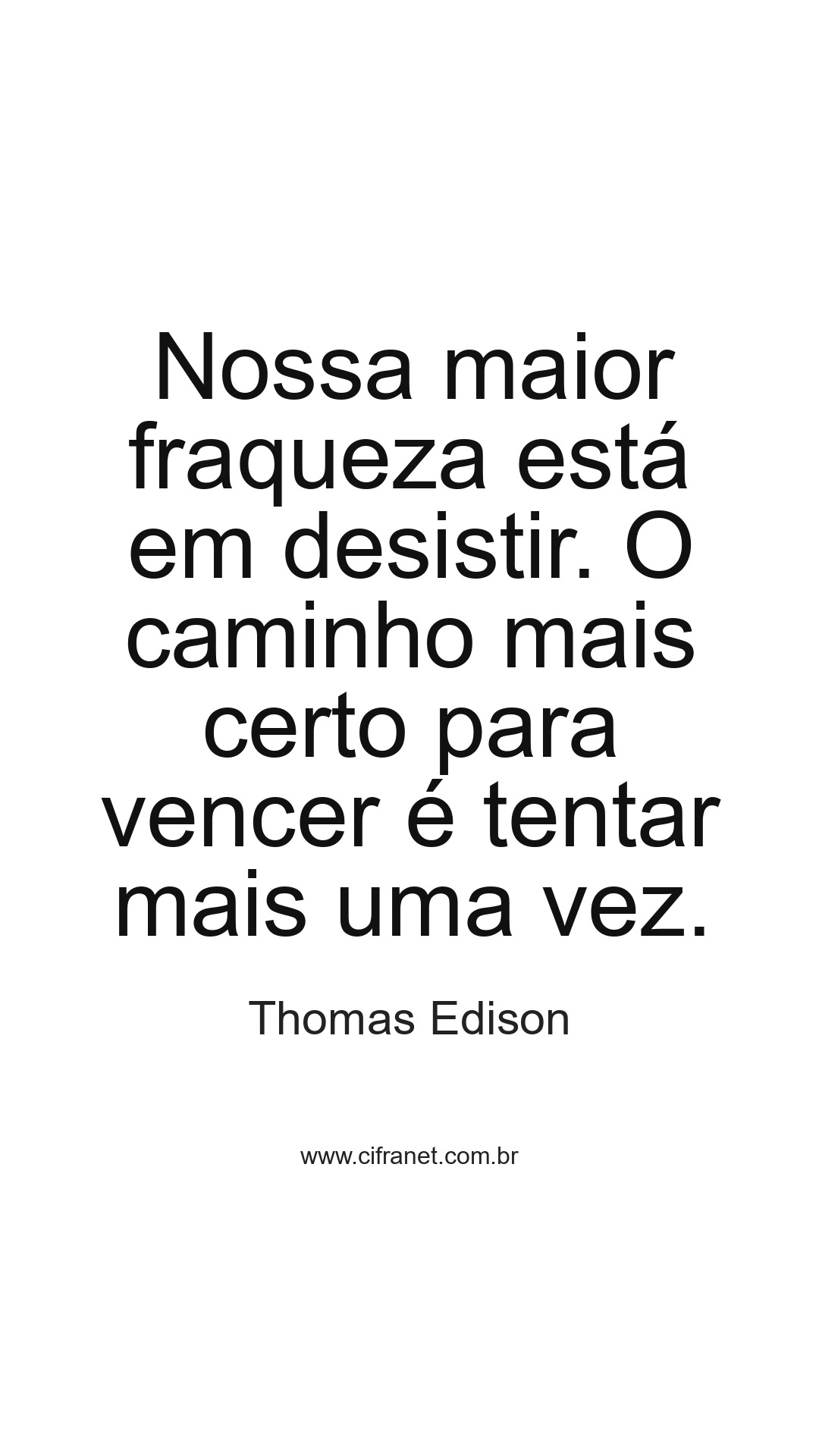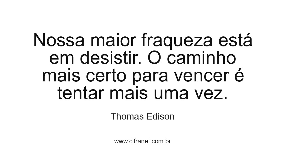 Nossa maior fraqueza está em desistir. O caminho mais certo para vencer é tentar mais uma vez.