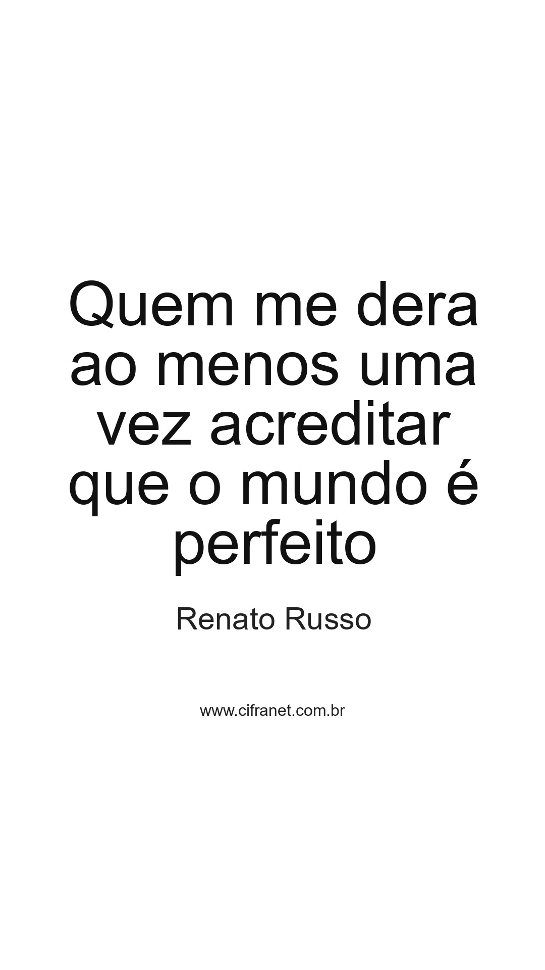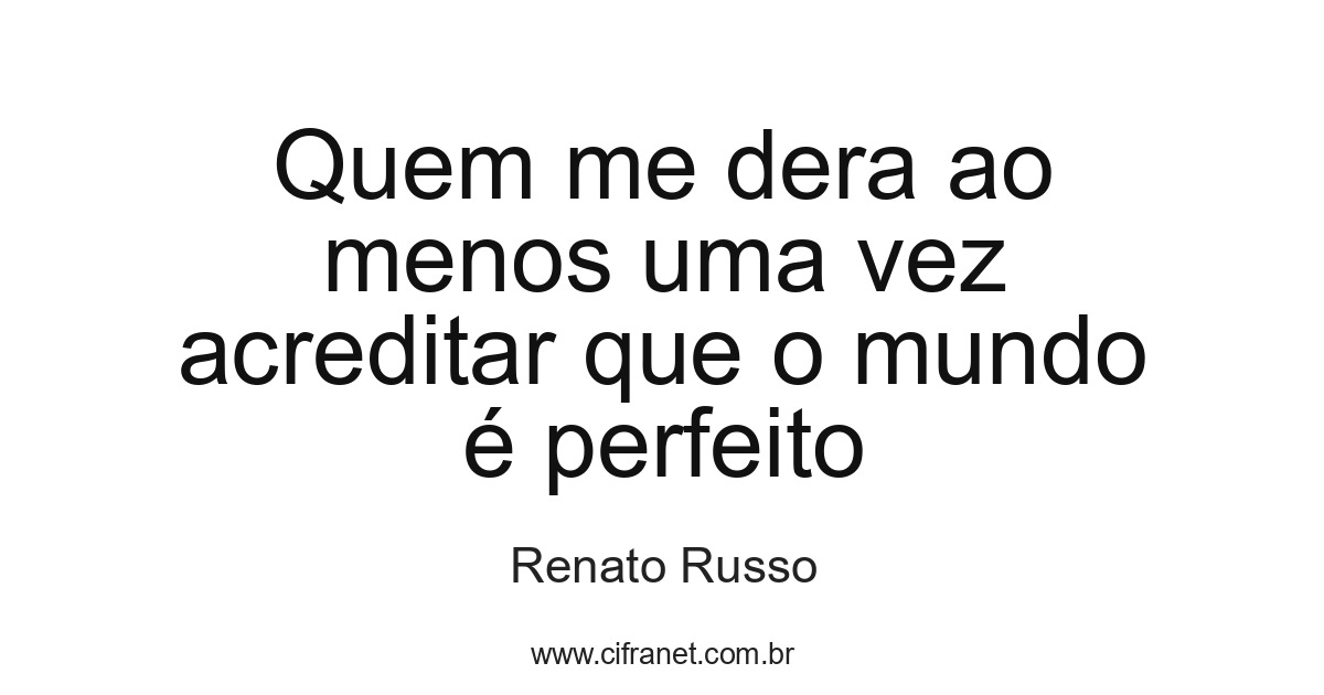 Quem me dera ao menos uma vez acreditar que o mundo é perfeito