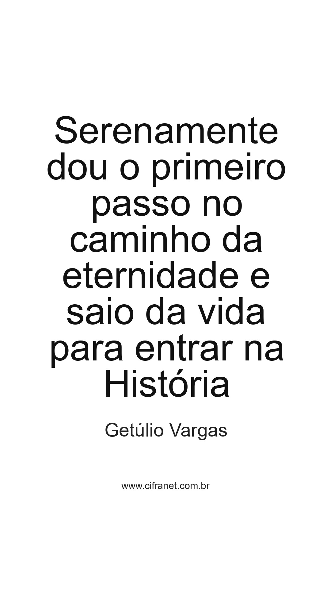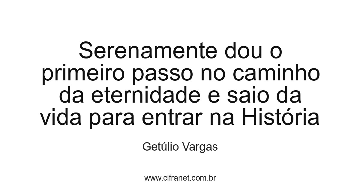 Serenamente dou o primeiro passo no caminho da eternidade e saio da vida para entrar na História