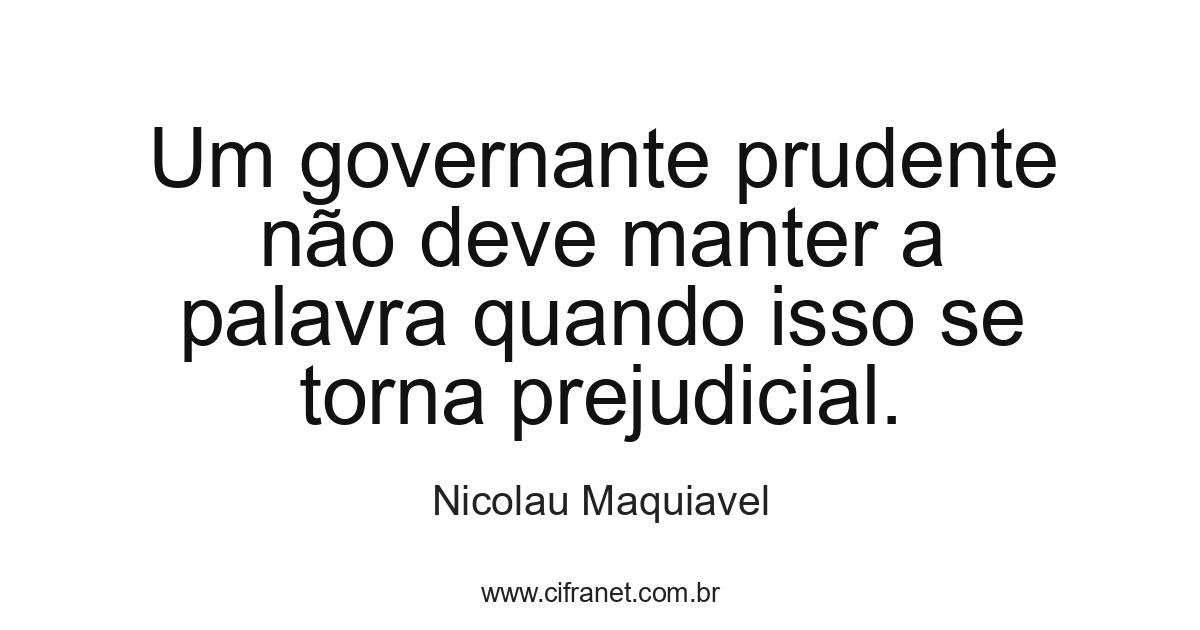 Um governante prudente não deve manter a palavra quando isso se torna prejudicial.