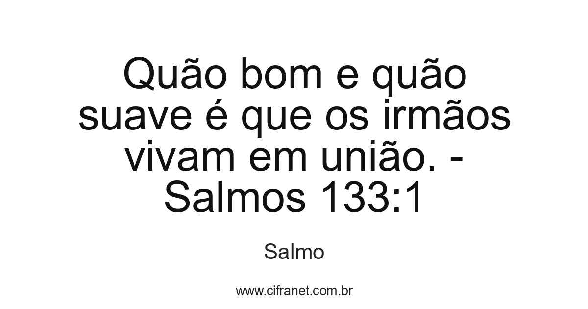 Quão bom e quão suave é que os irmãos vivam em união. - Salmos 133:1