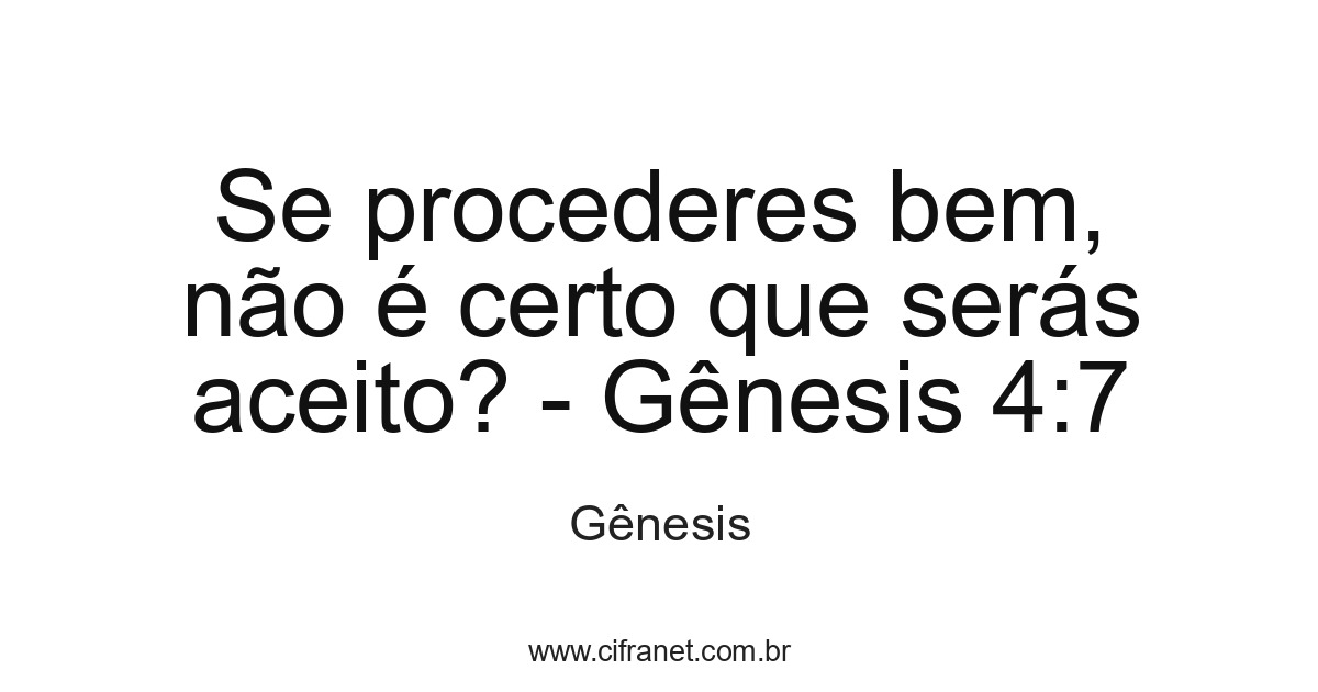 Se procederes bem, não é certo que serás aceito? - Gênesis 4:7