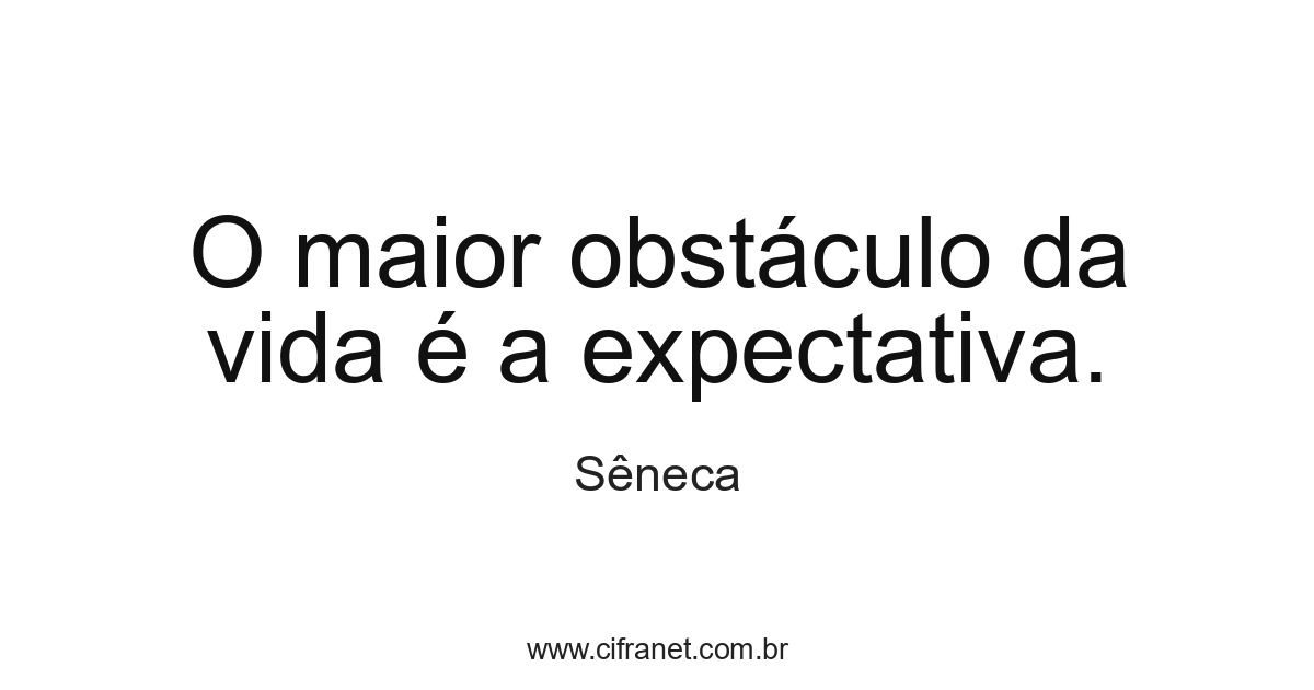 O maior obstáculo da vida é a expectativa.