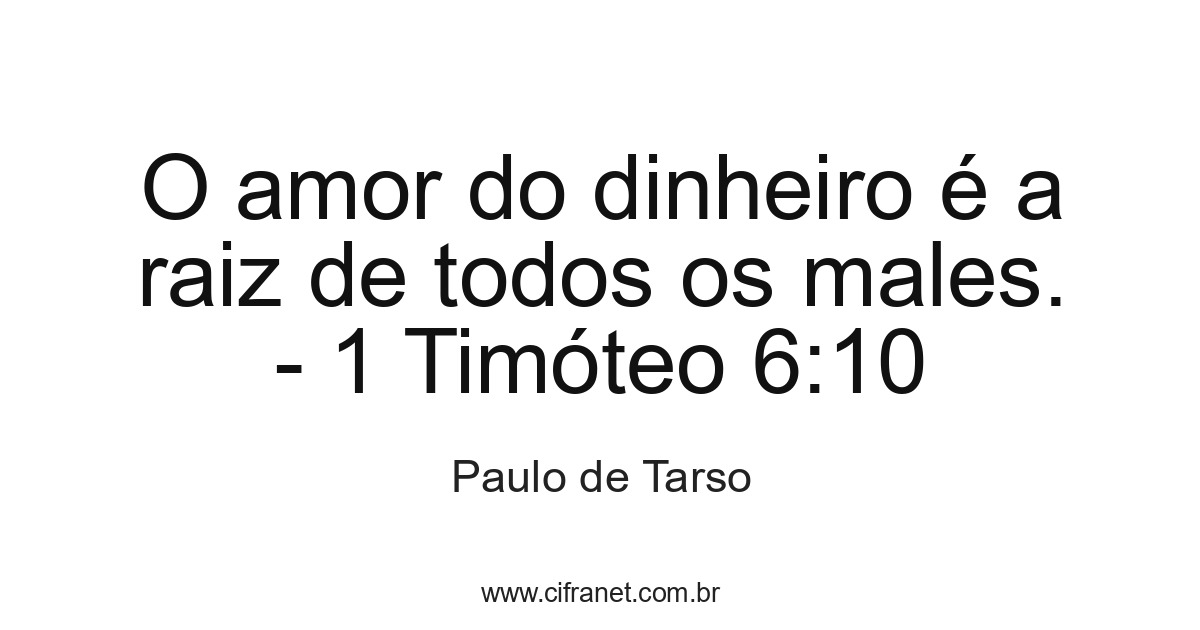 O amor do dinheiro é a raiz de todos os males. - 1 Timóteo 6:10