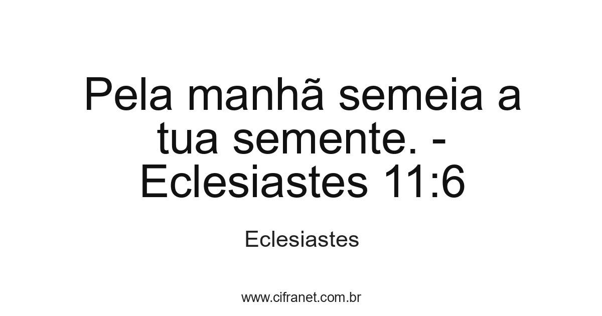 Pela manhã semeia a tua semente. - Eclesiastes 11:6